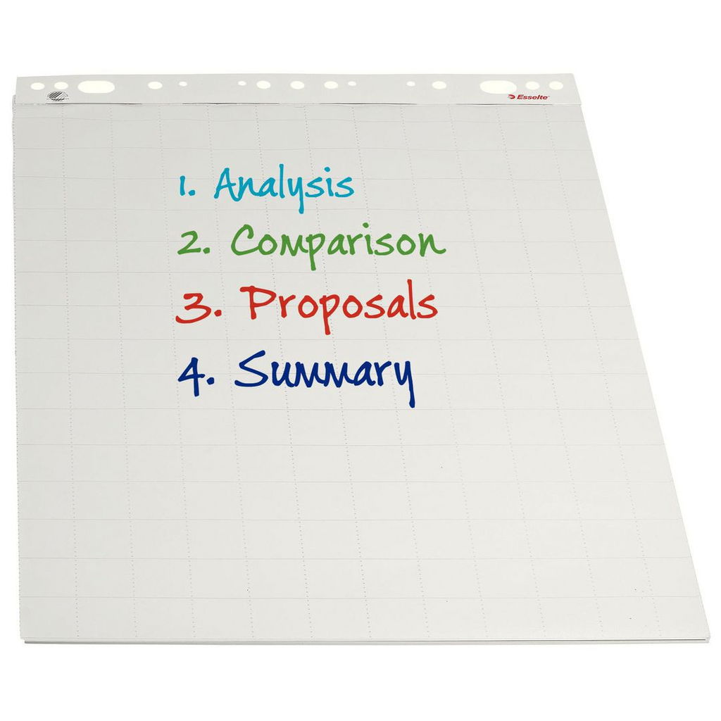 Rita grafer och siffror med dessa Esselte® blädderblock som innehåller 50 ark med rutnät och mikroperforeringar. Dessa Esselte® blädderblock har en perforerad yta med vitt rutmönster för att tydligt separera text eller siffror i ett prydligt format. Blädderblocken är tillverkade av termomekanisk pappersmassa (TMP) och är tillförlitliga tack vare deras hållbara kvalitet. Dessutom är de flerstansade med universella hål som gör att användarna enkelt kan byta blädderblock när arken tar slut. Dessutom kan du fästa ett blädderblock på ett universellt staffli för att bekvämt skriva på dess yta när du står upp eller visa det under ett möte eller seminarium.