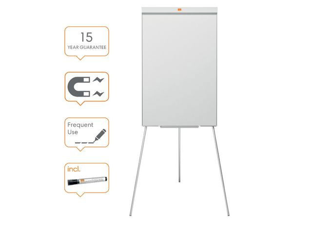 Det magnetiska stafflit från Nobo® för blädderblock och whiteboard är ett bekvämt och robust val för möten och brainstorming, samt enkelt att flytta omkring och förvara. Blädderblocksställ från Nobo® med whiteboard och blädderblock i en och samma enhet. Ett snyggt tillskott till kontor, mötesrum, konferenscenter och hotell. Du kan enkelt hänga upp pappersark på den magnetiska ytan eller skriva direkt på whiteboardtavlan. Den smarta designen innehåller även utdragbara ben som är fullständigt justerbara och gör att du kan ändra höjden för varje enskild användare. De kan även vikas undan på ett säkert sätt för transport och förvaring. Dessutom finns ett pennfack som rymmer pennorna och hindrar dem från att rulla iväg.