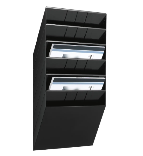 DURABLE FLEXIBOXX med 6 A4-fack – platsbesparande väggställ för broschyrer, blanketter och post. Komplett set med frontskiva, skruv och plugg.