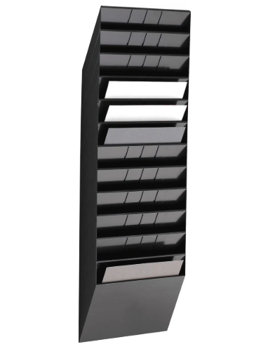 Skapa ett utrymme för visning av tidskrifter eller ett snabbt arkiveringssystem för A4-dokument med denna väggdisplay från Durable Flexiboxx. Med tolv fack ger den här horisontella displayen snabb ordning på kontor och i väntrum, samtidigt som designen är enkel att installera. Installera den här Flexiboxx-väggdisplayen på några minuter i alla rum som har användning för extra arkivering eller tidskriftsförvaring.