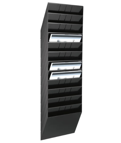 Montera denna Durable Flexiboxx väggdisplay på en vägg för snabb organisering av dokument, tidskrifter eller andra A4-papper.