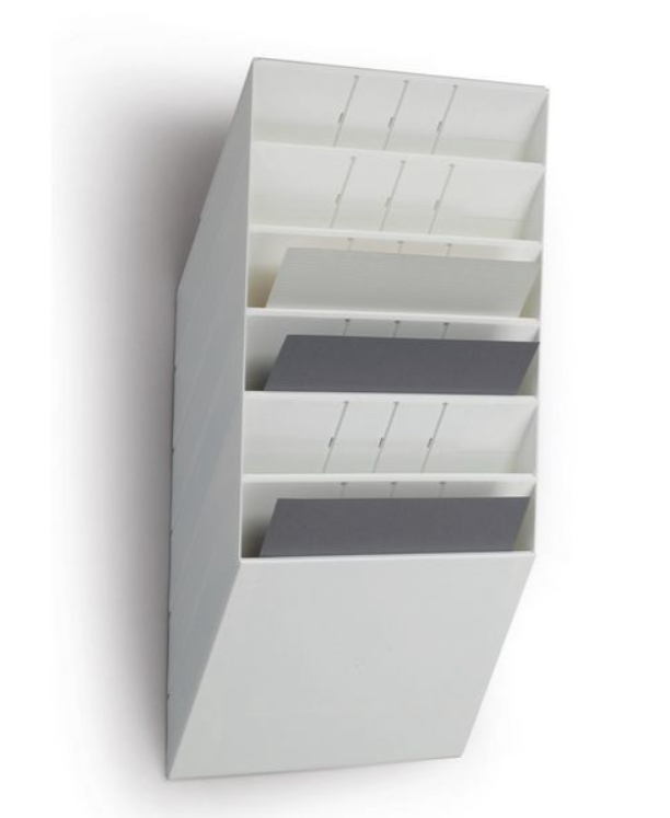 Montera denna Durable Flexiboxx väggdisplay på en vägg för snabb organisering av dokument, tidskrifter eller andra A4-papper.