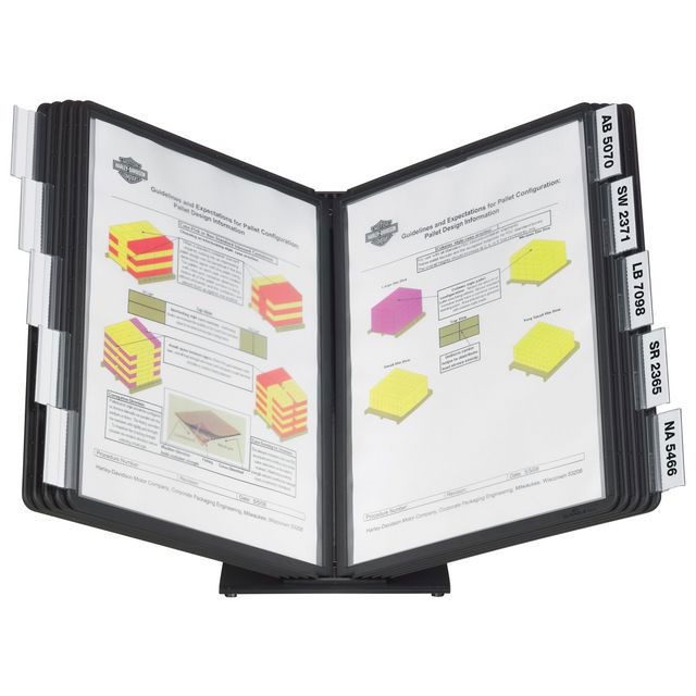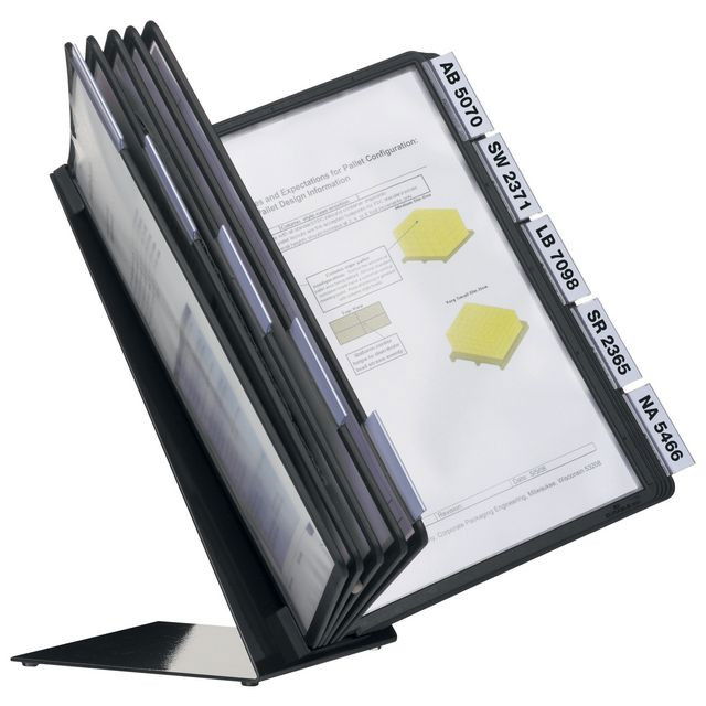 Levereras komplett med 10 paneler av PP-plast, svarta, samt 10 rubrikhållare.