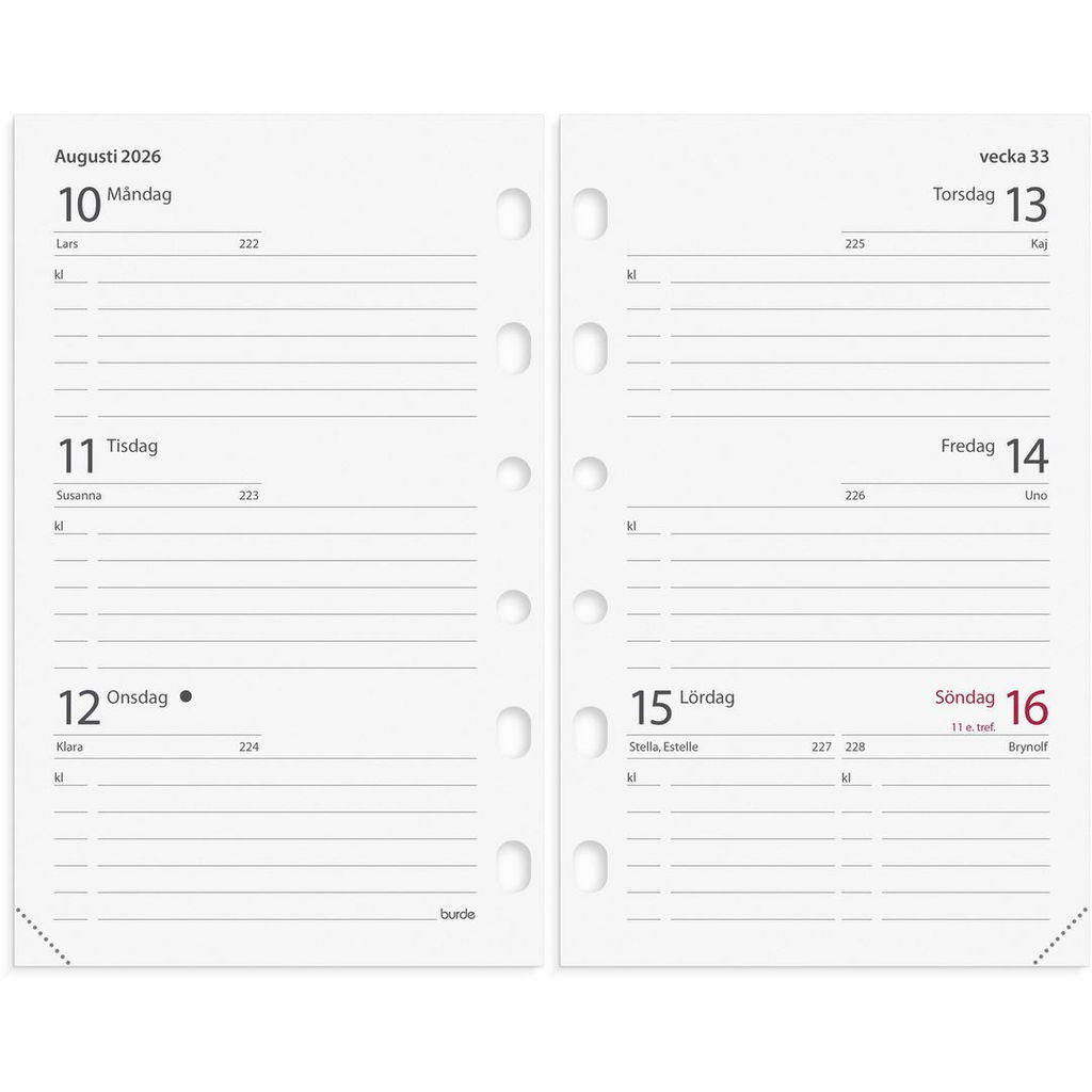Hålad kalenderrefill till systemkalender med ringmekanism.