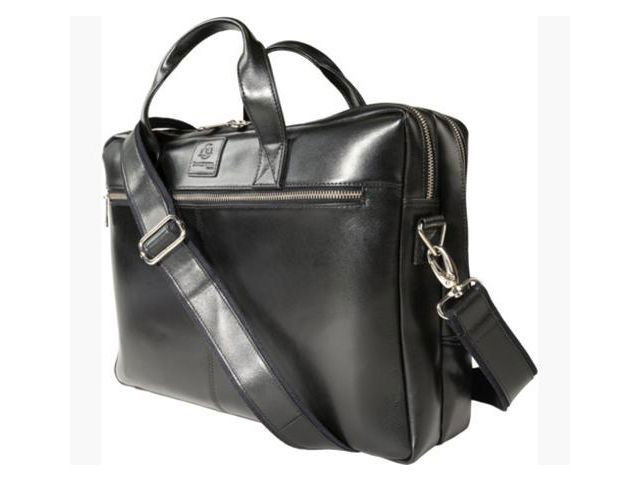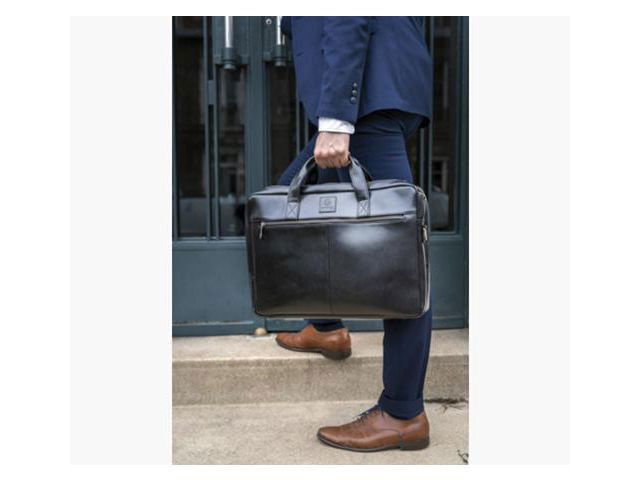 - Exactive Leather väska med dubbla fack är tillverkad av nötläder