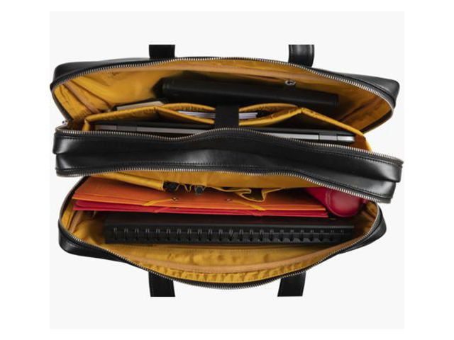 - Arkivfacket har två arkivområden, en stor ficka med dragkedja och flera ställen där du kan förvara pennor, kort, smartphones och smartphonetillbehör
