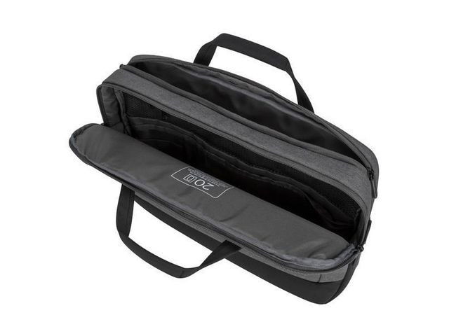 Tillverkad av återvinningsbart material inifrån och ut. Väskan har två huvudfack, en bekväm lättåtkomlig ficka och en strategiskt placerad arbetsstation som gör det lätt att skydda din bärbara dator och transportera dina prylar. Väskan har dessutom tre bärlägen så att du antingen kan bära den i bärhandtagen, få händerna fria med axelremmen eller använda dragremmen för att fästa den på din rullväska.