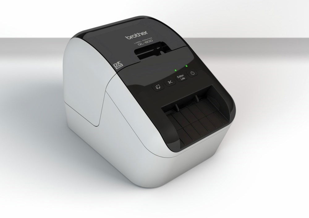 QL-800 Etikettskrivare med USB-anslutning för snabb och enkel anslutning. Skriv ut etiketter i svart och röd text.