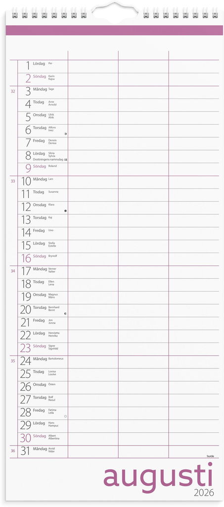 Den lilla familjekalendern är en vägghängd kalender som hjälper dig att frigöra tid för både familjemys och egentid. Kalendern är designad med en månad per sida, uppdelad i tre kolumner, perfekt för paret eller den lilla familjen. Alla planer får plats!