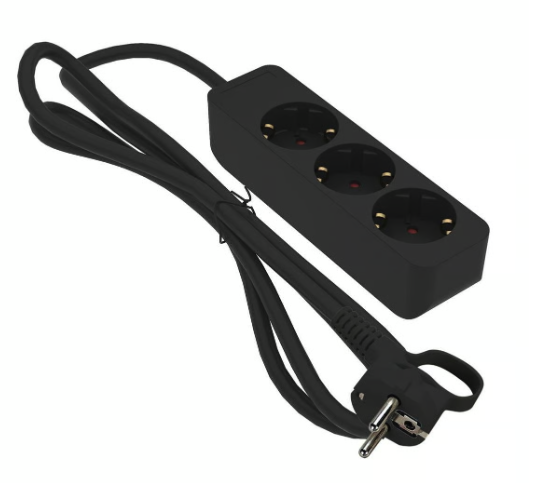 Grenuttag 3-vägs Jordad Svart 1m