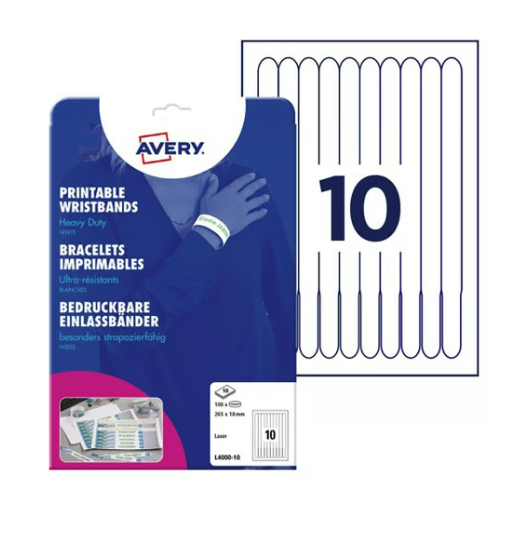 Det mjuka materialet och de jämna kanterna gör dem bekväma att bära. De är tillverkade av PVC-fritt material. De kan skrivas ut på alla sv/v- och färglaserskrivare. Designa och skriva ut med Averys kostnadsfria programvara Design & Print på www.avery.eu