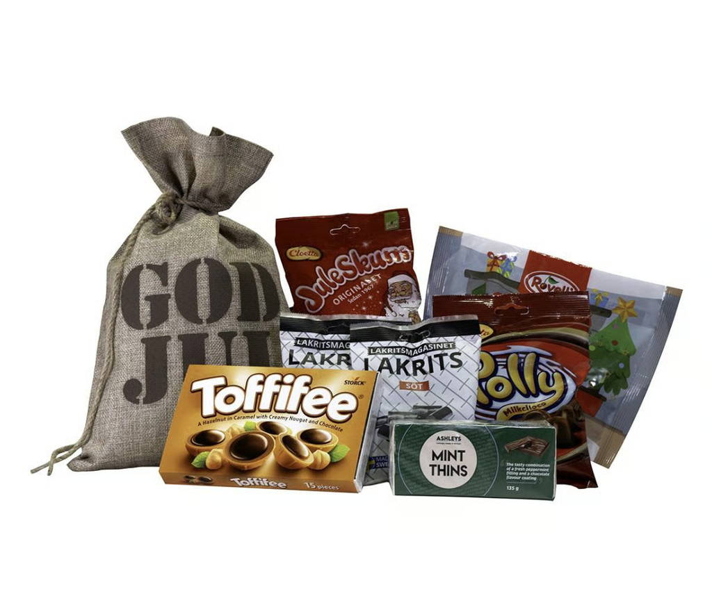 Vår minsta jutesäck på 1015 gram innehåller fem uppskattade artiklar och passar utmärkt som en mindre julklapp eller som en komplement till en annan gåva.