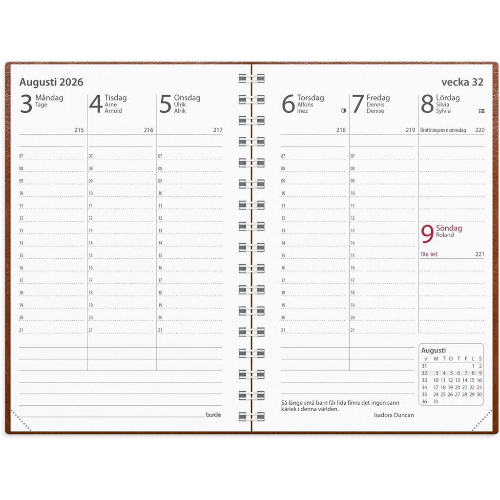 - Layout: Stående. Vecka/uppslag. Timindelning 7-21