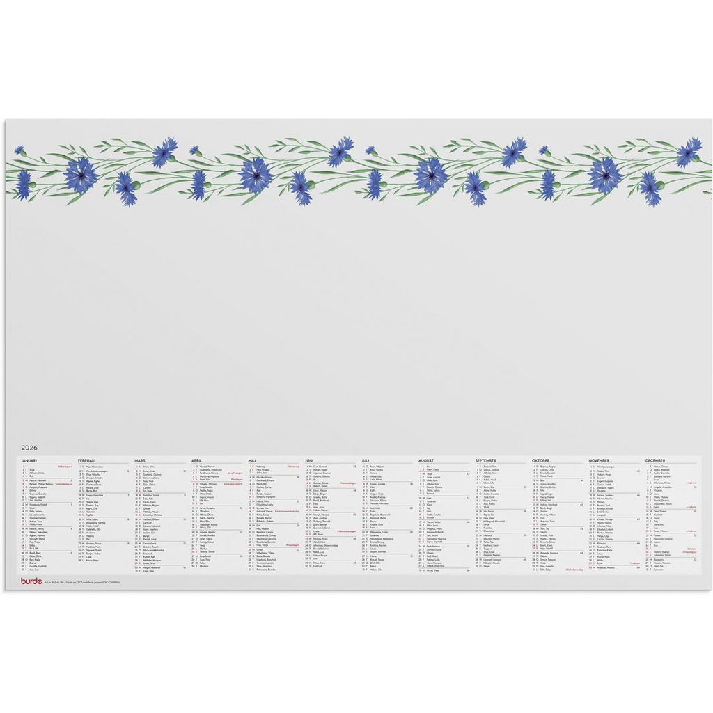 Detta praktiska skrivunderlägg har ett kalendarium samt mycket utrymme för egna noteringar. Du får ett block om 20 blad som är limbundet i nederkant. Kalender 2026 från Burde.