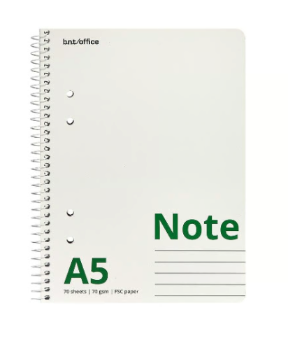 Kollegieblock Linjerat 70 Blad A5 70g. Sidospiralbundet linjerat kollegieblock i A5 storlek med svensk standard hålning. 70 ark och 70 grams papper. Blocken är FSC märkta med vit fram-och baksida samt mikroperforerade papper. Perfekt för anteckningar i skolan, på kontoret eller hemma.