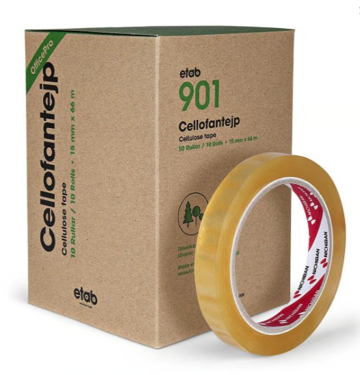 Etab 901 är gjord av äkta cellofan med naturgummibaserat häftämne och är helt återvinningsbar.