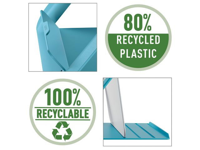 Tillverkad av 80% post-consumer återvunnen plast, produkten kan demonteras genom att metalldelar separeras från plast för 100% återvinning. Hög kvalitet och lång livslängd för att hjälpa till att bevara jordens resurser. Att använda ett laptopställ främjar också luftflödet, vilket håller din laptops batteri och andra komponenter svala för att upprätthålla höga prestandanivåer. Med sin minimalistiska och färgglada design förbättrar det här eleganta laptopstativet både hälsa och välbefinnande genom att enkelt skapa den perfekta aktiva arbetsmiljön.