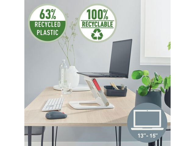 Leitz Ergo Multi-Angle Laptopstativ höjer skärmen på din laptop till den perfekta ergonomiska höjden, för att göra det mer bekvämt att titta in i skärmen och för att hjälpa till att förbättra din hållning.