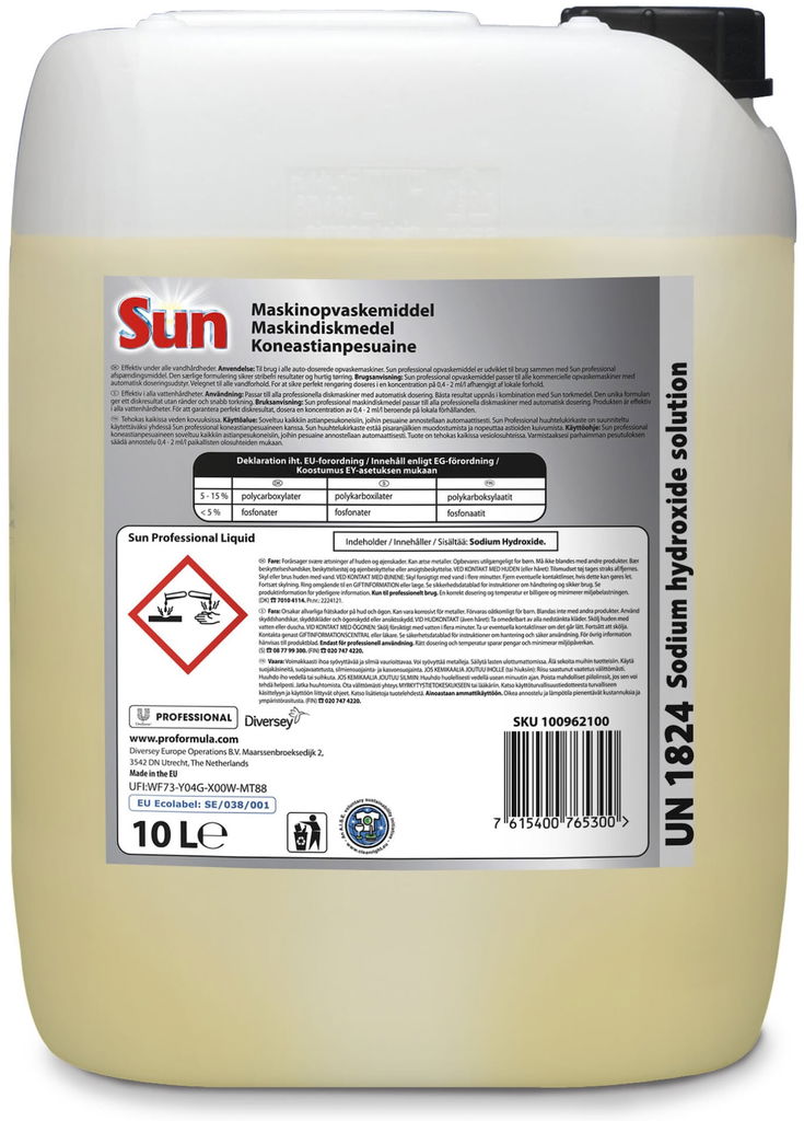 Miljömärkt professionellt flytande maskindiskmedel för diskmaskiner med automatisk dosering. Effektivt för alla typer av diskgods, låg dosering ger bra diskekonomi. Skinande ren och torr disk.
