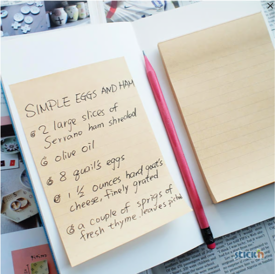 Självhäftande Notisblock i kraftpapper som fäster överallt om och om igen utan att skada underlaget. 100 linjerade blad 150x100 mm.