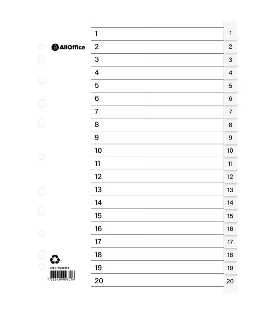 Dessa förtryckta register är användarvänliga, stabila och ger enkel indexering och identifiering av innehållet i dina anteckningsböcker, pärmar och mappar. Registret har försättsblad av papper och förtryckta flikar så att du snabbt kan identifiera och hitta rätt material. Den hållbara plastkonstruktionen tål dagligt slitage och kan enkelt flyttas tack vare universalstansningen som fungerar med alla pärm- och arkiveringssystem.