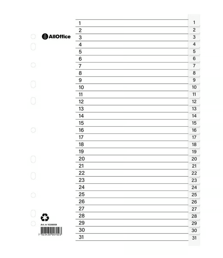 Pärmregister plast inkl. rubrikblad 1-31 A4
