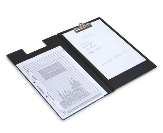 Perfekt om man ska arbeta utomhus ock behöver göra noteringar, som vid event eller tävling. Klämman håller pappret på plats och dessutom har plattanen ficka på insidan av omslaget för extra förvaring.