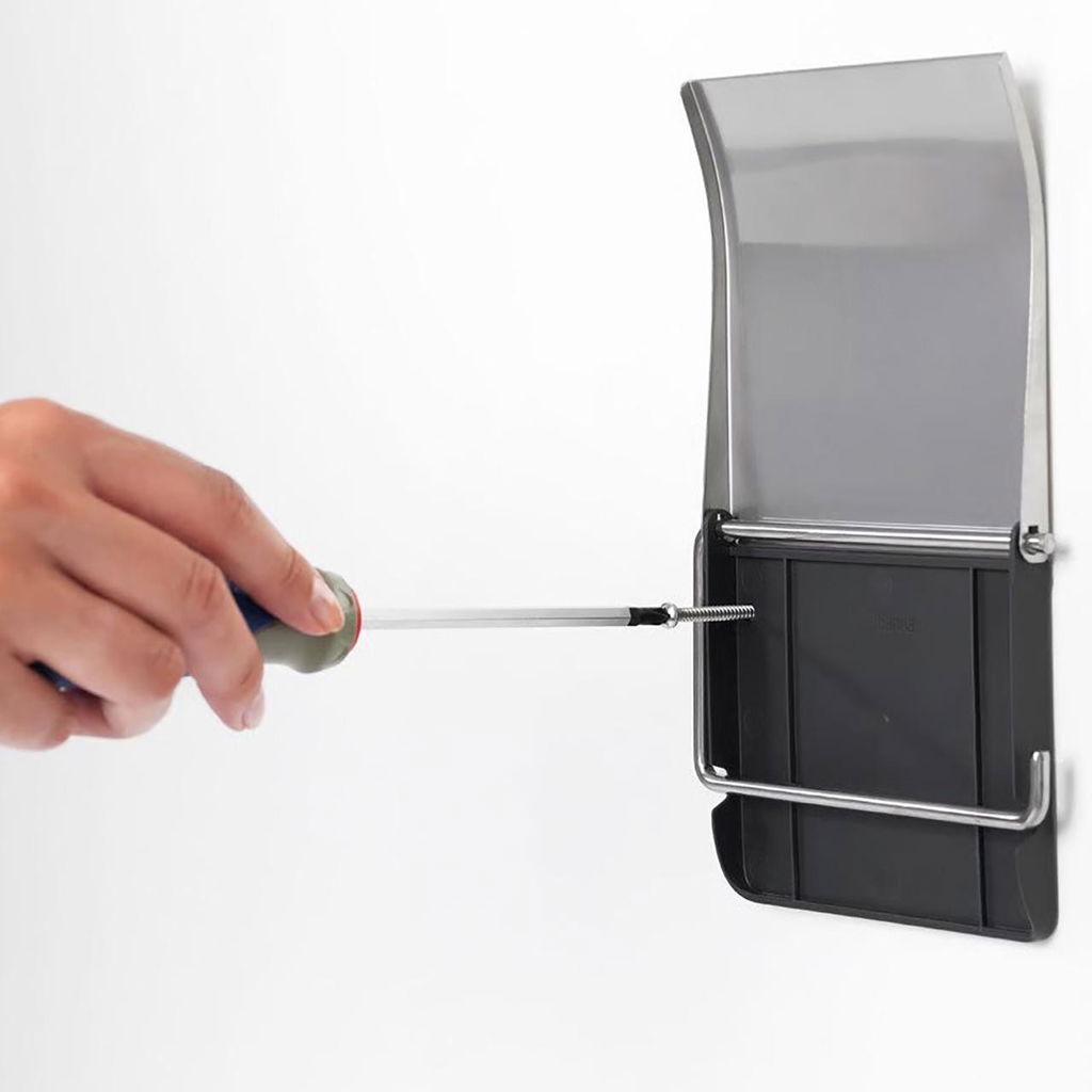 Toalettrullehållare för montering på väggen med medföljande skruvar eller dubbelhäftande tejp. Lätt att ta isär och rengöra samt fylla på. Blankborstat stål.