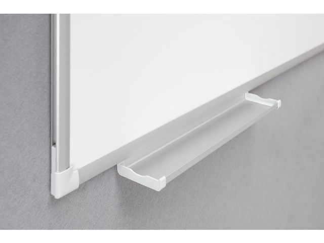 Whiteboardtavla med yta av keramiskt stål, väggfäste och avtagbar pennhållare ingår.